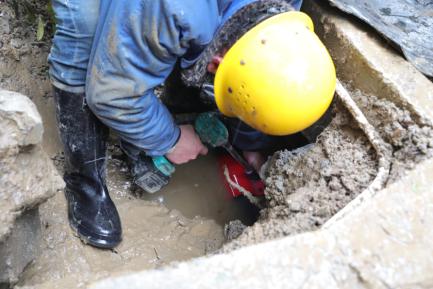 因漏水量大,工作人員來不及更換雨鞋就緊急關閥止水,為了讓搶修速度更快,師傅們直接跳到1米多深的水泥坑里用鍬、鏟等各類工具開挖漏點;拆卸、安裝、焊接,一刻也不停歇;抽干積水,清理路面。大家分工協(xié)作,經過四個小時的奮力搶修,終于維修完畢,開閘通水。此時,搶修人員的衣服、鞋子早已被水浸透,寒風中,大家凍得瑟瑟發(fā)抖、雙手麻木通紅,但他們每個人的內心都充滿了欣慰,因為他們在這個飄雪團圓的小年里,又一次用實際行動給居民群眾送去了“放心水”。