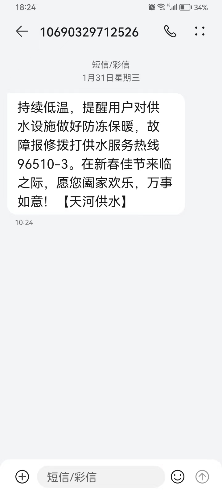 為提高市民防凍保溫意識,公司加大供水設(shè)施防凍保暖宣傳力度,在官網(wǎng)及微信公眾號發(fā)布防凍溫馨提示,給用戶發(fā)送短信累計55000余條,提醒市民做好供水設(shè)施的防寒防凍工作。同時,公司還對各小區(qū)的物業(yè)公司進行告知尋訪,持續(xù)巡查重點區(qū)域,在發(fā)現(xiàn)凍損情況時立即采取措施疏通,組織維修更換。